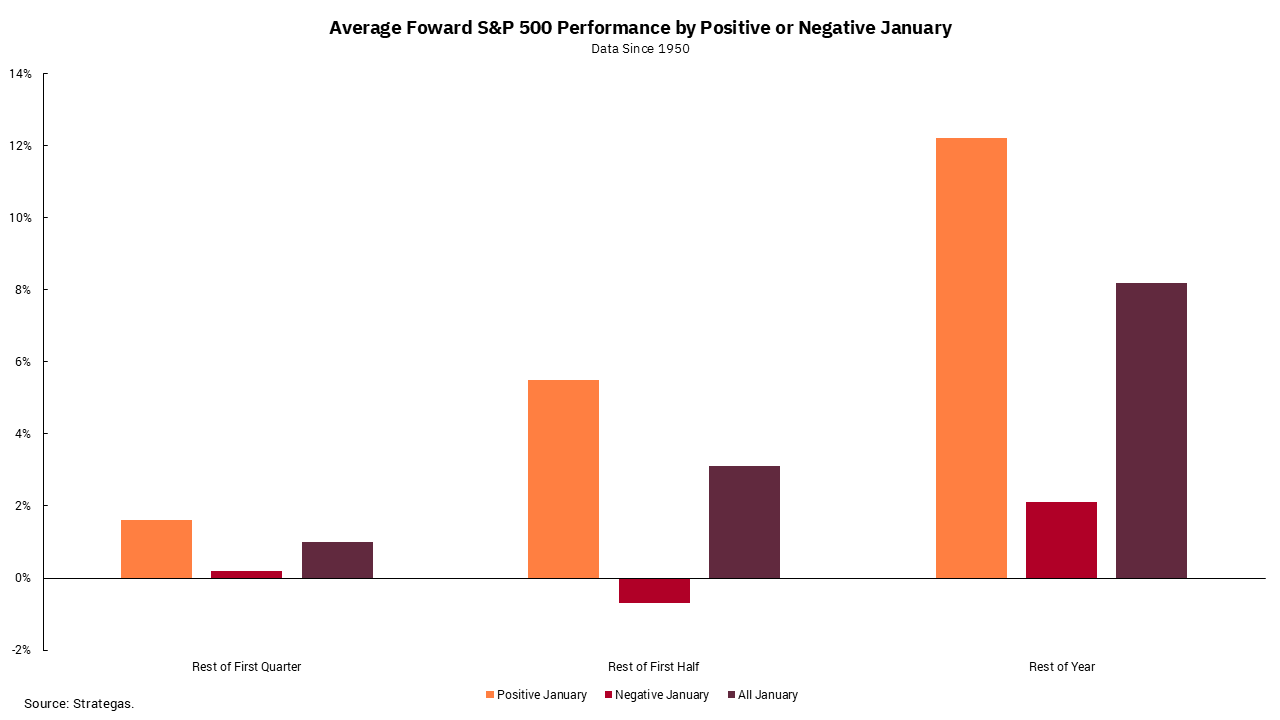 - Historically, positive January performance has correlated with stronger first-quarter, first-half, and full-year equity returns.